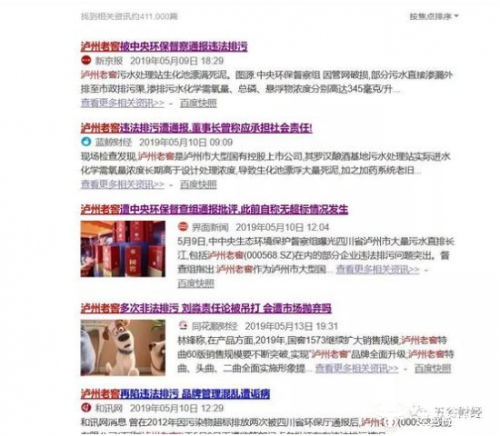 因为酿酒基地违法排污,泸州老窖被点名通报,国内各大主流媒体纷纷予以报道,这让泸州老窖的品牌形象受损。