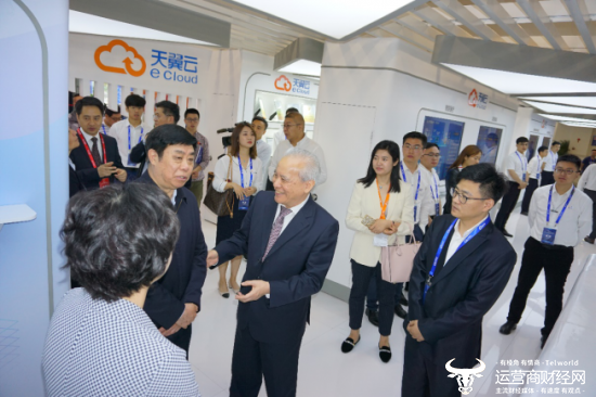 第十二届全国政协副主席、国家电子政务专家委员会主任王钦敏、工业和信息化部党组成员、总工程师、中国电子学会理事长张峰莅临参观天翼云展台