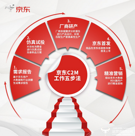 2019京东618全球年中购物节即将到来的前夕,作为电商行业领军者的京东,在与中国贸促会研究院联合召开的“C2M反向定制:零售为王时代到来”座谈会上,发布了通过大规模探索和深度实践总结出的反向定制(C2M)工作五步法:需求报告、仿真试投、厂商研产、京东首发、精准营销。该五步法覆盖了产品生产、销售的全链条,为品牌商新品研发、爆品打造提供了一套完整的解决方案。