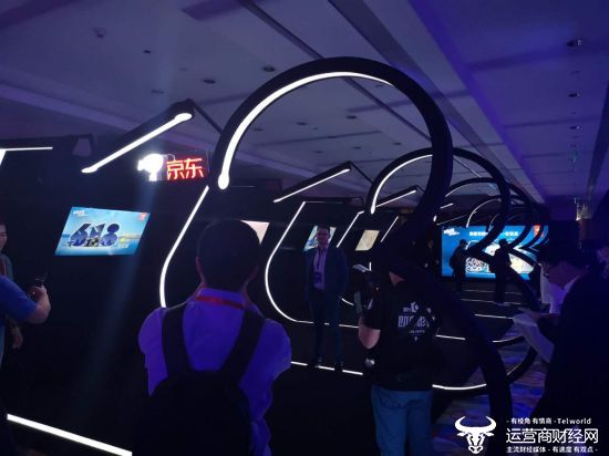 在展厅设置了一个科技长廊,屏幕上循环播放618宣传片,独特的造型引现场嘉宾纷纷掏出手机合影留念。