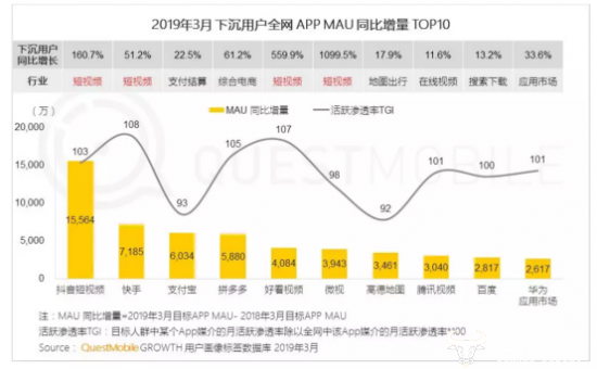 报告显示,中国全互联网应用中,抖音、快手、支付宝、拼多多分列下沉市场MAU(月活用户)增量前四,其中,拼多多净增下沉月活用户5880万,同比增速高达61.2%。