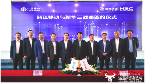 5月22日,中国移动通信集团浙江有限公司(以下简称“浙江移动”)与紫光旗下新华三集团(以下简称“新华三”)在杭州签署战略合作协议,宣布双方将进一步扩大和拓展已有良好合作关系,联合打造“浙江移动-新华三5G行业应用创新中心”,在精品网络建设、云计算、DICT生态、基础通信业务及信息化服务等领域开展更深层次的战略合作,携手助力浙江省及全国数字经济的纵深推进。浙江移动党委书记、董事长、总经理郑杰和紫光股份董事长、新华三集团总裁兼首席执行官于英涛出席签约协议。
