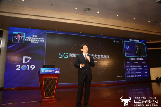 会议上,中国电信系统集成公司解决方案部副总经理于浩以“5G赋能产业创新 助力智慧媒体”为题做了主旨演讲,从5G的发展和现状、5G网络建设与部署、5G赋能媒体应用等方面向参会嘉宾展示了中国电信的建设步伐与实现成果。