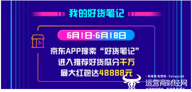 敲重点!6月1号起,618主会场还将开始一轮“我的好货笔记”活动,单个最大红包近5万元。据了解,“我的好货笔记”共包含3种红包玩法。第一种为红包升级法,通过用户邀请好友给自己的好货笔记打call,就可随机获得5-118热度值。热度值每破百一次,就可升级获得一次开红包的机会,一共可开8次红包。第二种为瓜分百万奖池的玩法,一共两波奖池。第一波锦鲤大奖包含18888元红包1份,8888元红包5份,888元红包10份,于6月6日晚上8点开奖;第二波锦鲤大奖包含48888元红包1份,8888元红包5份,888元红包10份,于6月16号晚上8点开奖。第三种相对简单,只要点击好友好货笔记浏览商品满3次即可抽一次红包,最高99元。