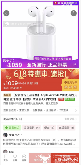 ▲拼多多新款AirPods仅售1059元