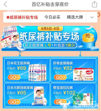 ▲拼多多“百亿补贴”开设纸尿裤等母婴产品专场