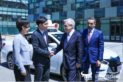 智利总统皮涅拉在滴滴总部与程维和柳青交流,并试乘了滴滴无人车
