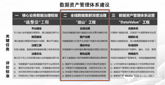 通过参考行业的治理经验,并结合公司业务和组织架构特点,我们总结出了一套适合公司业务发展的数据资产管理体系,也就是“疏整促+巡山+DataValue”数据资产管理体系:基于“疏整促”工程构建的全生命周期数据管控治理体系,基于“巡山”工程构建的大规模集群治理体系,基于“DataValue”工程实现对外数据价值经营,三大工程同步推进,形成数据治理+集群治理+数据价值的整体协同效应。
