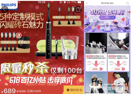 ▲6月9日,在平台618“百亿现金补贴”的带动下,拼多多包括耐克、阿迪达斯等品牌在内的运动专场,销量同比增长超过350%,美妆个护类目整体同比增长超过260%
