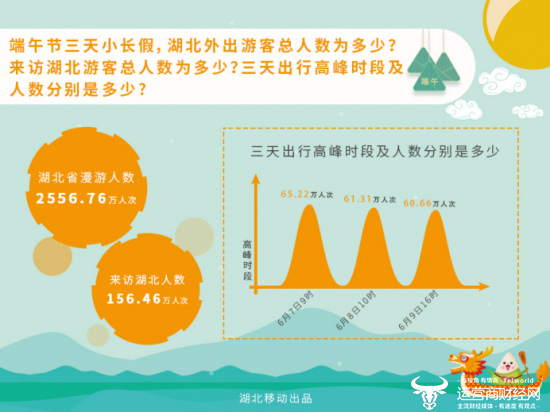 在刚刚过去的端午节期间,气势磅礴的“长江灯光秀”在武汉华丽上演;“与军运同行”2019国际龙舟邀请赛在东湖畔隆重举行;荆楚各地争相开展特色各异的乡村游,吸引众多游客慕名前来观光体验。据湖北省权威机构数据统计,这三天全省共接待游客1769.24万人次,实现旅游总收入69.8亿元,同比分别增长了13.5%和14.43%。虽然旅游市场较去年同期稳中有升,但受“高考”、天气等诸多因素影响,端午小长假湖北人出游热情较“五一”降低了不少。