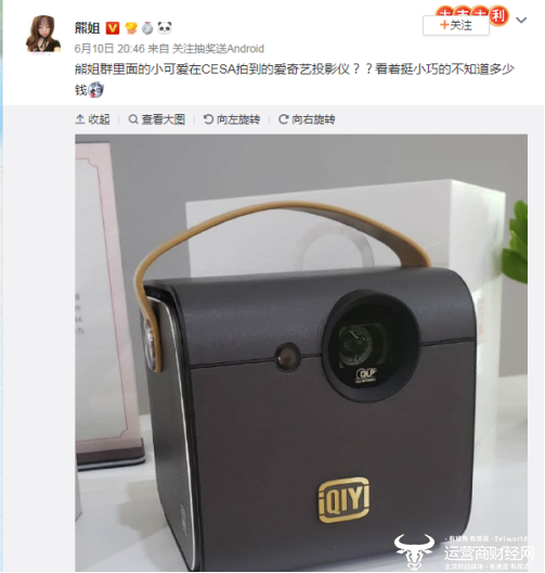 日前,亚洲消费电子展(CESA)在上海举行,媒体在探馆时意外拍到一款全新的投影仪。投影仪照片虽然不清晰,但能看出外形很精巧,鉴于左边摆着爱奇艺电视果,小编猜测这款投影仪和电视果是同门兄弟。