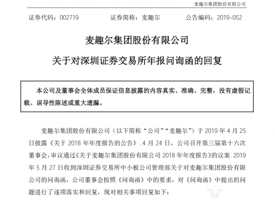 对于深交所的质疑,麦趣尔方面也进行了回复。青岛丹香是于2018年4月6日进行董事会改选,并且在4月8日完成了股东、董事及监事的工商变更登记,新董事会成员分别为李勇、王叔斋、姚学。