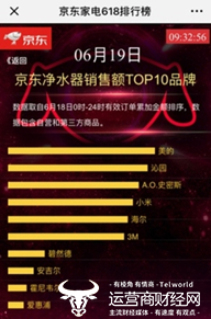 再说说净水器,还记得去年净水器品牌的拼杀非常激烈。美的、沁园、小米、海尔、A.O史密斯,各家好手都互不相让。最终沁园终于按耐不住率先出手,请来偶像明星、暖心老爸吴尊进行助阵,最终在6月15日京东家电618销售排行榜净水器品类榜单上力压群雄、一举夺魁。可经过跌落起伏之后,在接近618尾声阶段,美的再次将净水器冠军的位置夺回,沁园也同样反超小米,这场争夺战实在是太精彩了。今年的榜单,让我们非常惊喜的是,小米从去年的老三一跃成为净水器的销量头牌,硬生生将美的和沁园甩在了第三位。但是,美的和小米的销量看起来差距真的很小,这次美的能否像去年一样霸气回旋,沁园又是否会有大招等着我们呢?
