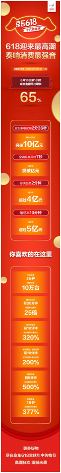 京东家电的主场地位被一步步夯实,从18日零时起,京东家电仅用2分36秒整体成交额就突破10亿元大关,其中空调品类仅用时7秒成交额就突破亿元,冰洗品类2分钟成交额也达到了4亿元以上,美的、海尔、格力三大品牌均在3分钟内突破亿元大关。