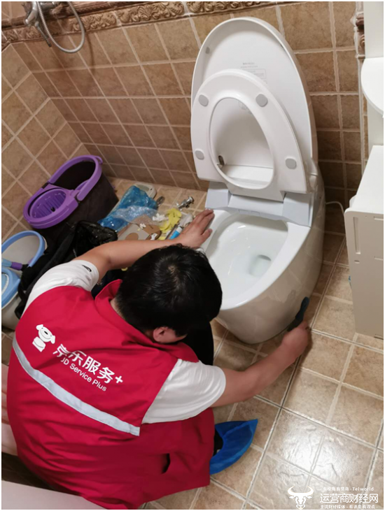 “京东服务+”小哥正在安装马桶