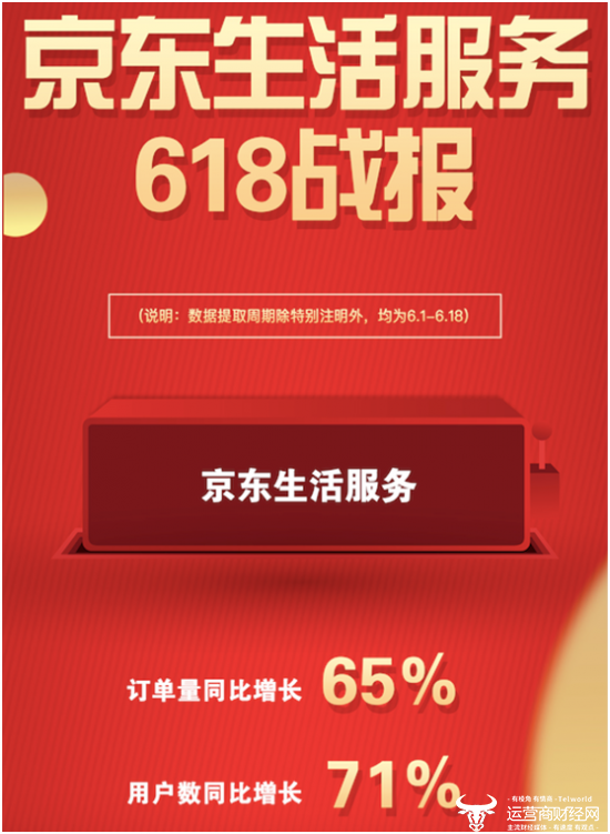 今年618期间(2019年6月1日~6月18日),京东618十六周年庆累计下单金额达2015亿元,其中“服务型消费”的增长趋势尤为明显。来自京东生活服务事业群的数据显示,今年618期间京东生活服务订单数量同比增长65%,用户数同比增长71%,互联网医院问诊、心理咨询服务、国际酒店预定等服务类商品的订单量更是出现了数倍甚至数十倍的增长。