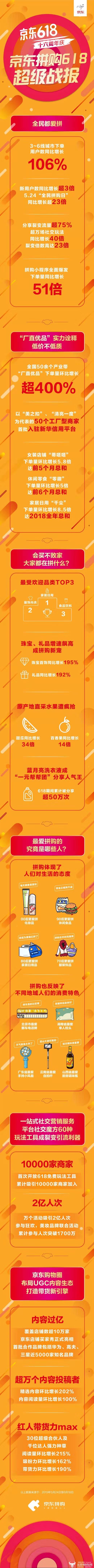 截止6月18日24时,京东618全球年中购物节累计下单金额达2015亿元,覆盖全球消费者达7.5亿。作为京东发展社交电商的重要力量,京东拼购在京东618期间释放出了不容忽视的拉新力,通过拼购带来的京东全站新用户数同比增长超过3倍。同时,京东拼购已成为京东零售业务向低线城市下沉的新引擎,京东618期间,京东拼购3-6线城市下单用户数同比增长106%,除此之外,京东拼购还将“最优惠、最丰富、最好玩”体现得淋漓尽致,京东拼购小程序下单量同比增长51倍;超万场的社交玩法,同比增长40倍,分享裂变流量占比超75%,裂变倍数高达23倍。