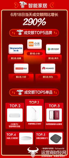 智能化时代的到来,原本死板的家居产品也走上了智能化道路。京东618期间智能家居6月18日当天同比增长290%,成交额前五的品牌为小米、创维、腾讯、岡祈、华为;成交额前五的单品是米家智能LED台灯、小米盒子4 智能网络机顶盒、米家智能家庭礼品套装、米家LED吸顶灯、创维企鹅极光T2。