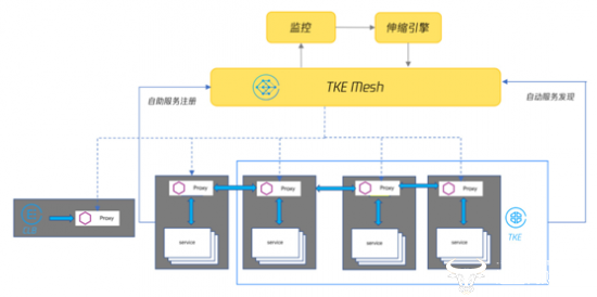 TKE Mesh实现了服务网格的开箱即用、全面管控等目标。在提供了网格创建、控制面组件升级与伸缩等能力的基础上,覆盖了服务从创建,更新到销毁等生命周期所需要的全套服务治理能力。