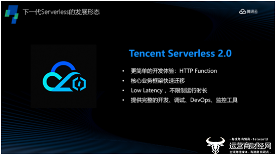 作为继虚拟机、容器后的第三代通用计算平台,无服务器架构是腾讯云原生的重点发力领域。腾讯云 serverless2.0 在已有的事件触发函数的基础之上,根据实际的用户使用场景,进一步提供了面向 http 场景的 http function 和 http service,提供了高层次的通用开发框架,不仅更好的支持开发者面向 web service 的开发诉求,也可以支持已有业务代码向 serverless 架构的无缝迁移。