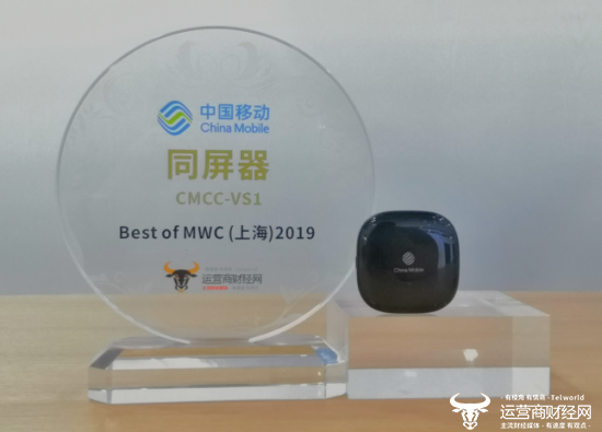 近日,MWC(上海)2019正式拉开帷幕,中国移动携诸多终端产品亮相。期间,中国移动自主品牌终端产品同屏器CMCC-VS1凭借小巧灵动、极富科技感的外观设计获最佳产品奖,由MWC 2019合作媒体、知名财经媒体运营商财经网颁发。