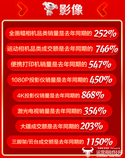 而在影像领域,京东618开场半小时,全画幅相机销量是去年同期的252%,运动相机品类成交额是去年同期746%,1080P和4K投影仪销量分别是去年同期的450%和868%。而随着短视频领域的快速发展,大疆成交额是去年同期的203%,三脚架/云台成交额是去年同期的1150%,相信在未来5G市场的带动下,在京东的相关品牌将会开拓更广阔的市场空间。