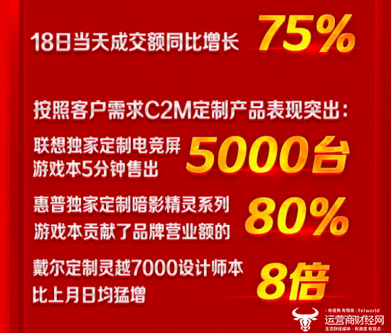 不仅如此,在追究京东618期间发布的战报时发现,京东以用户需求为导向,联合各大品牌打造的C2M定制产品表现极为亮眼。6月18日战报数据显示,联想独家定制电竞屏游戏本5分钟售出5000台;惠普独家定制暗影系列游戏本成交额占品牌营业额的80%;而618全新上线的戴尔灵越7000设计师本也实现环比5月(日均)猛增8倍的惊人成绩。在这些令人欣喜的数据背后,是用户对京东的信任和支持,也是品牌与京东深度合作的结果。