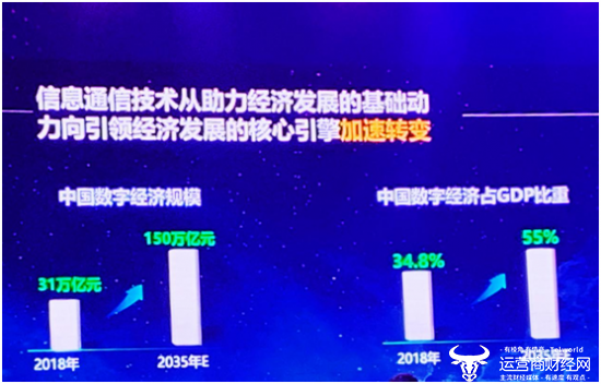 他指出,这带动了移动支付、智慧物流等快速发展,数字经济培育了经济新动能,信息通信产业加速向工业、农业、服务业融合渗透。2018年中国数字经济规模达到31.3万亿元,占GDP比重达到34.8%,提供就业岗位1.91亿个。根据预测,到2035年,中国数字经济占GDP的比重将增至55%。