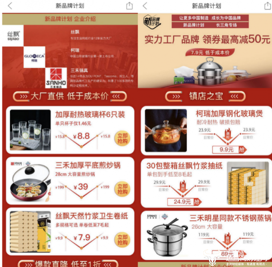 ▲6月28日,拼多多推出“新品牌计划”特惠专场,联合成员企业大幅让利平台4.43亿消费者