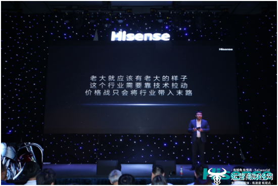 王伟表示,尤其是近一年来,电视价格战让行业销售额下降近14%,拖着电视市场一再朝着产品低端低质的泥淖下滑,如此下去整个电视产业只会死路一条。海信作为中国高端彩电第一品牌,这些年来坚持深耕技术,不断推出5000zone最高分区超画质电视、三色激光电视、最窄BM区电视和叠屏电视等尖端技术产品,并敞开胸怀欢迎华为等入局者,这才是老大才应该有的担当。他说:“我们就是要卖比索尼更贵的电视,就是要带领中国电视行业走向产业链高端,如果不是海信,还会是谁?”