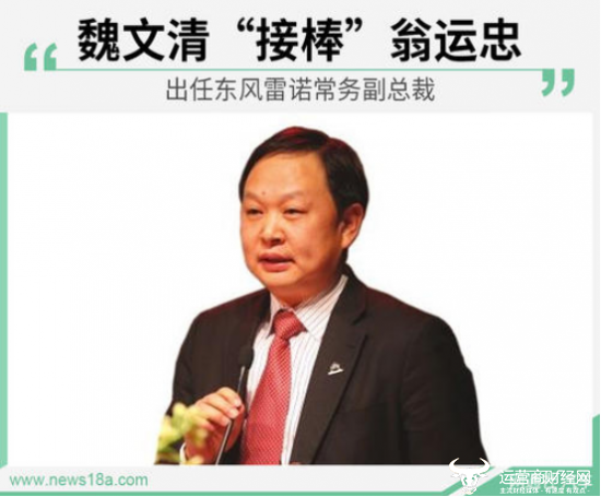 无独有偶,外界猜疑这与翁运忠之后的调动不无关系。2018年有消息报道称,为振兴东风雷诺销量,东风英菲尼迪执行副总经理雷新将接替翁运忠出任东风雷诺常务副总裁,后者将调往东风鸿泰担任总经理,该任命将择期发布。据运营商财经网了解,东风鸿泰成立于2006年8月,是东风公司旗下核心汽车零部件与汽车水平事业的业务单元,这一调度,显然是让翁运忠回归到汽车零部件老本行。