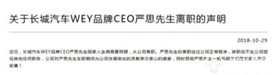 运营商财经网了解到,去年10月长城汽车WEY品牌CEO严思宣布因家庭原因离职,直到目前WEY品牌总经理一职还无人接手,因此有不少人猜测,严思离职还有一大方面原因是因为WEY业绩,虽然长城汽车没有公开说明,但WEY品牌CEO职位空缺近一年,一直是长城汽车董事长魏建军在负责管理,如今销量颓势还未逆转,能否找到下一任接替者还是未知数。