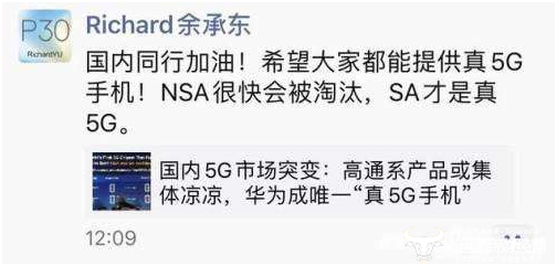 那么,为何“NSA是假5G手机”会流传?这主要是因为华为消费者BG董事长余承东在其朋友圈中说,“国内同行加油,希望大家都能提供真5G手机,NSA很快被淘汰,SA才是真5G。”