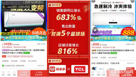 素有“下沉王”之称的拼多多,在三四线空调销售上表现强势。