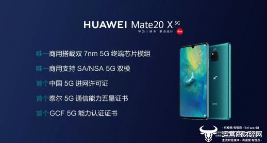 支持SA/NSA两种网络模式的5G双模手机,华为Mate 20 X (5G)今日发布!