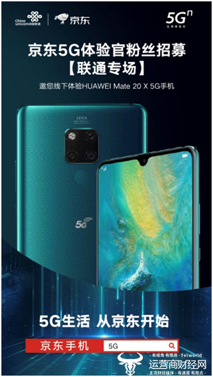 8月1日,中国联通5G体验店正式推出HUAWEI Mate 20 X 5G手机体验活动,更携手京东推出5G抢先体验计划(联通专场),届时体验用户有机会获得0元购机券。