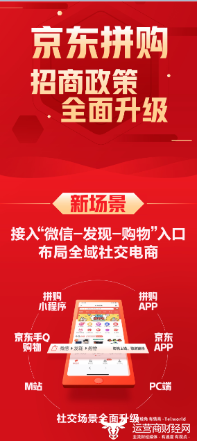 近日,京东拼购动作不断。继7月16日京东拼购业务部内部更名后,7月25日,京东拼购宣布招商政策全面升级:即将接入“微信-发现-购物”对接社交流量,全面开放招商类目并减免平台使用费,未来将依托全新升级的拼购业务打造新型社交电商平台。
