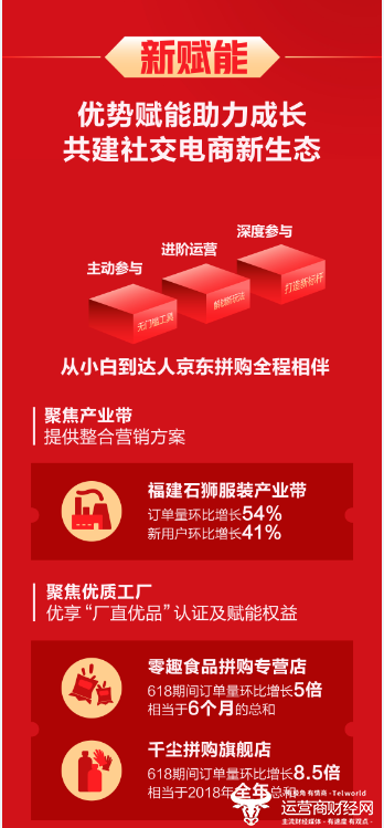 今年的京东618数据显示,京东拼购3-6线城市下单用户数同比增长106%,通过拼购带来的京东全站新用户数同比增长超过3倍。京东拼购在下沉市场释放出令人惊喜的拉新力,这也成为京东发力社交电商业务的重要筹码。