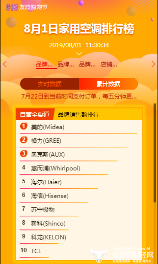 在传统的家电制造企业之外,以自产或代工的方式进入家电行业,也成为一大亮点。面对新兴家电走俏市场的局面,苏宁积极响应家电补贴政策,对新型绿色、智能化家电产品销售及交售旧家电并购买新家电产品,予以适当补贴。截至目前,苏宁发布了数十款苏宁小Biu系列智能新品,全面覆盖家电领域。据苏宁悟空榜大数据,截至目前,美的、格力、奥克斯获苏宁家用空调自营全渠道销售额品牌前三,进入白天时段,超12000家互联网门店将迎来消费热潮,818全场景零售全面爆发。