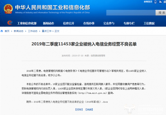 7月30日,工信部最新通报了第二季度电信业务经营不良的企业,此次被纳入电信业务经营不良的企业高达11453家,而中国联通嘉兴分公司就是其中一员,同时还“吃”了行政处罚单。
