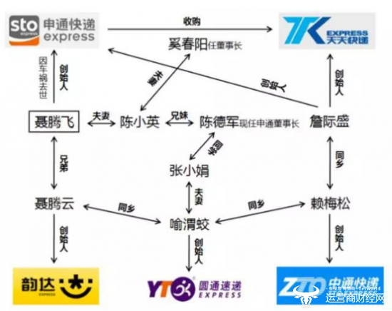 1998年,聂腾飞遭遇车祸逝世,陈小英接手了丈夫的申通快递。而聂腾飞的弟弟聂腾云离开申通创办了“韵达”;2012年,陈小英的第二任丈夫奚春阳出任天天快递董事长。现在的申通董事长陈德军则是陈小英的哥哥。