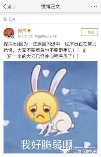 据悉,前段时间,探探在安卓软件上被下架,据了解是因为传播污秽色情信息,官方对此也给了回应,受此影响,股价也曾一度下跌。此外,探探还因侵犯用户隐私被整治。面对如此多的负面新闻,这次探探又因平台内部问题需抢修,那么探探真是“虱多不怕痒”了吗?