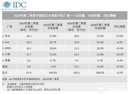 4、苹果手机在中国的销量岌岌可危。根据咨询公司报告,华为第二季度在华出货3730万部,市场份额达到37.3%,稳居第一;OPPO市场份额为19.7%,排名第二;vivo市场份额18.5%,排名第三;小米排名第四,市场份额为12%。苹果出货量为620万部,排名第五。苹果手机真是越来越不争气呀。