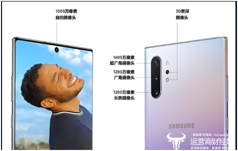 拍照方面,Galaxy Note10后置摄像头为三摄组合,规格为前置1000万像素自拍镜头,后置1200万像素DualPixel可变光圈镜头、1600万像素超广角镜头以及1200万像素长焦镜头三摄模组。Galaxy Note10+所采取的四摄方案则是增加了TOF镜头。前置1000万像素自拍镜头,后置1200万像素DualPixel可变光圈镜头、1600万像素超广角镜头、1200万像素长焦镜头及VGATOF四摄模组。专业的镜头模式满足更加专业化的拍摄需求。