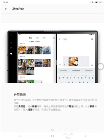 此外,我们在普通手机上无法实现的拖拽分享功能,这块“平板”柔派亦可以实现。用户可以直接拖拽辅屏内容到邮件附件,或者在微信对话框里拖拽图片、文档等。