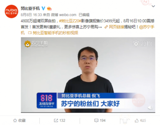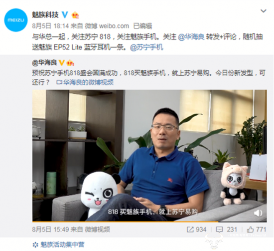 不仅是三星,努比亚和魅族的总裁级领导,也纷纷为苏宁818发声,助阵自家品牌的818销量,包括努比亚手机总裁倪飞、魅族科技副总裁华海良等,各家霸道总裁纷纷喊话,“818买手机上苏宁易购”。