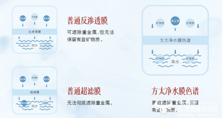 据权威检测报告(国家海水及苦咸水利用产品质量监督检验中心、中国科学院宁波材料所)显示, 方太净水机对铅、镉、铬、砷的去除率均达到了与反渗透净水机相同的水平,而独创的膜色谱滤芯对钙、镁、钠等常量元素几乎无截留,从而真正起到高效滤除重金属的同时又适当保留有益矿物质的功能。