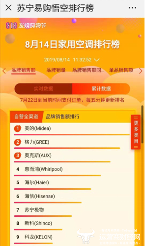 眼下,随着818大战的持续深入,苏宁家电主场捷报频传。据中国家用电器研究院和全国家用电器工业信息中心权威发布的《2019年中国家电行业半年度报告》,苏宁再度以22.4%的市场份额占比雄踞家电全渠道第一。而空调作为苏宁家电强势品类,更是取得了上半年逆势增长26%的战绩,引领了整个空调行业的变革升级。