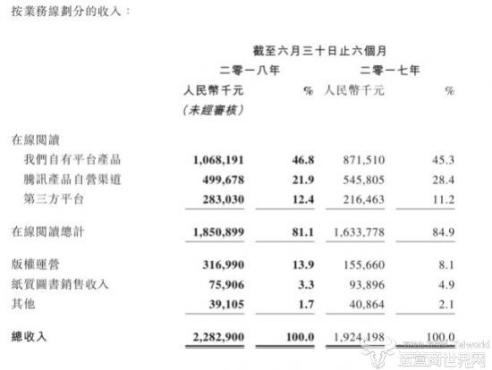 财报显示,阅文集团2019年上半年实现总收入29.74亿元人民币,同比增长30.28%;毛利为16.2亿元,同比增长35.5%。值得关注的是,在线业务收入为16.62亿元人民币,同比下滑11.5%,其中,版权运营占比最大,收入达12.15亿元人民币,同比增长280.3%,但净利润为3.93亿元人民币,同比下降22.4%。
