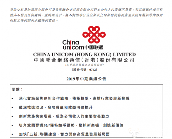 中国联通表示“2019年上半年,云计算、大数据、物联网等创新业务成为稳定公司收入的主要驱动力。”